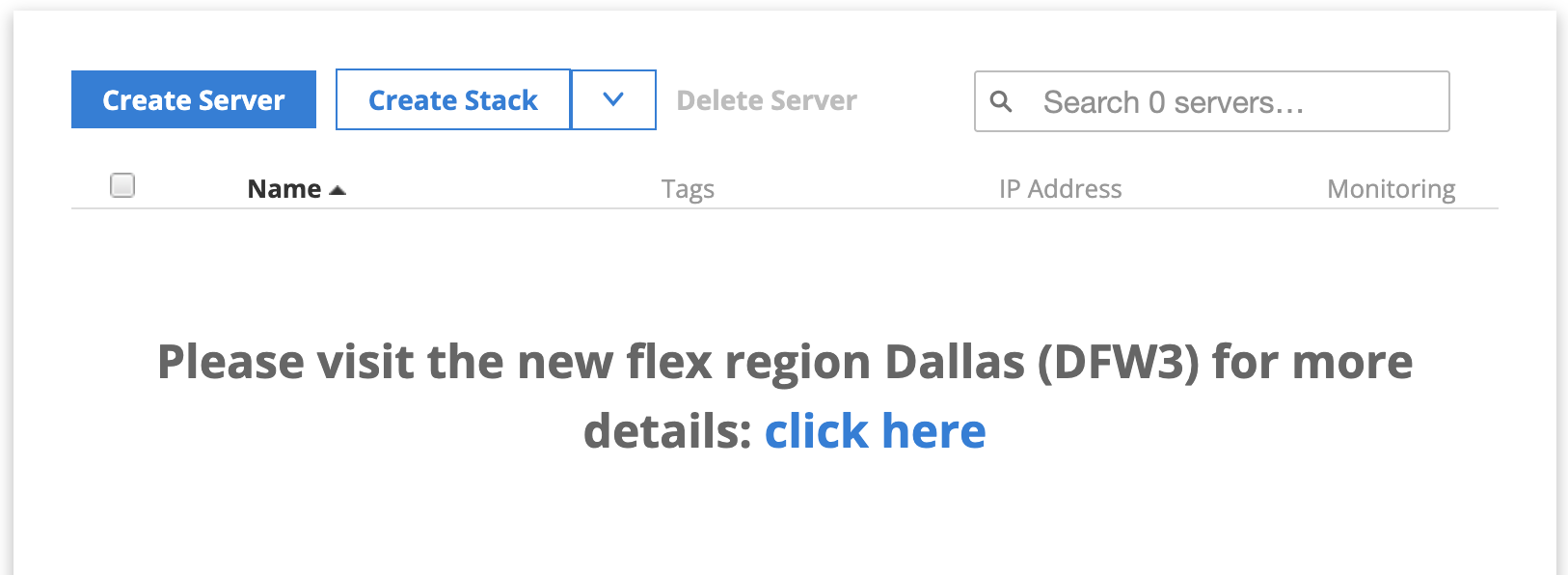 - Use the Regions drop-down to select the desired New Flex Regions and click the click here hyperlink