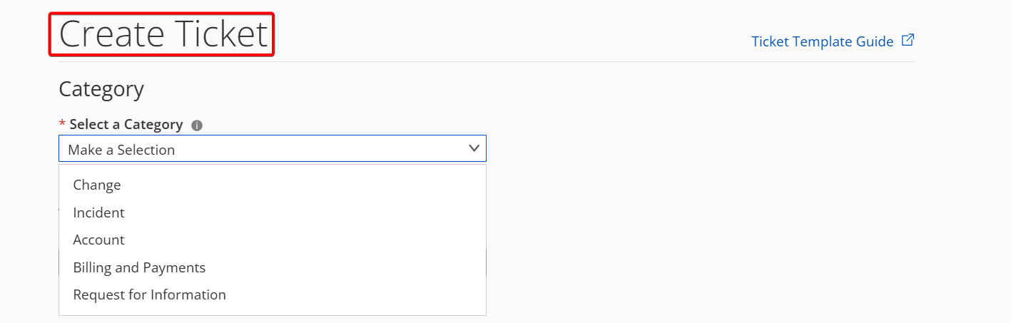 Step 3. In Create Ticket page, select the appropriate Category from Select Category drop down menu.