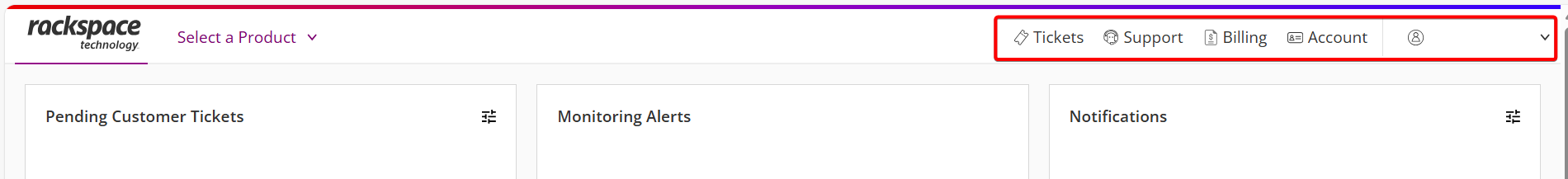 Although the Rackspace Technology customer portal is different for Public Cloud and Private Cloud customers, both portals include a global navigation menu that allows you to complete common tasks easily.